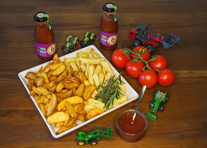 Der Klassiker sind natürlich Pommes Frites mit Ketchup. Aber Kinder nutzen den Ketchup auch als Dipp und er passt perfekt zu Grillwürstchen.