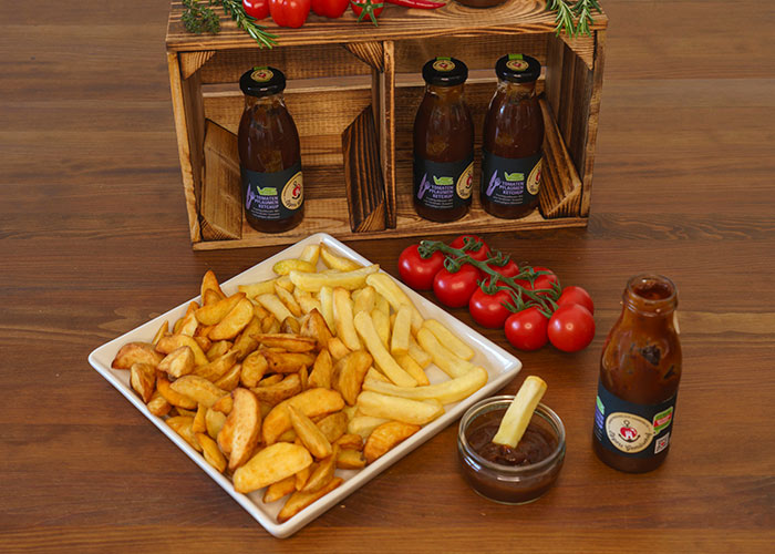 Die Kombination aus Vierländer Tomaten und Norddeutschen Pflaumen macht unseren Tomaten-Pflaumen-Kreation zu einem süß-würzigen Ketchup – eine tolle Ergänzung zu Kartoffel-Wedges, Pommes-Frites und auch zu Grillfleisch.
