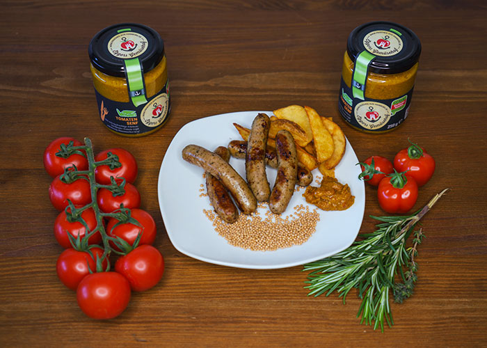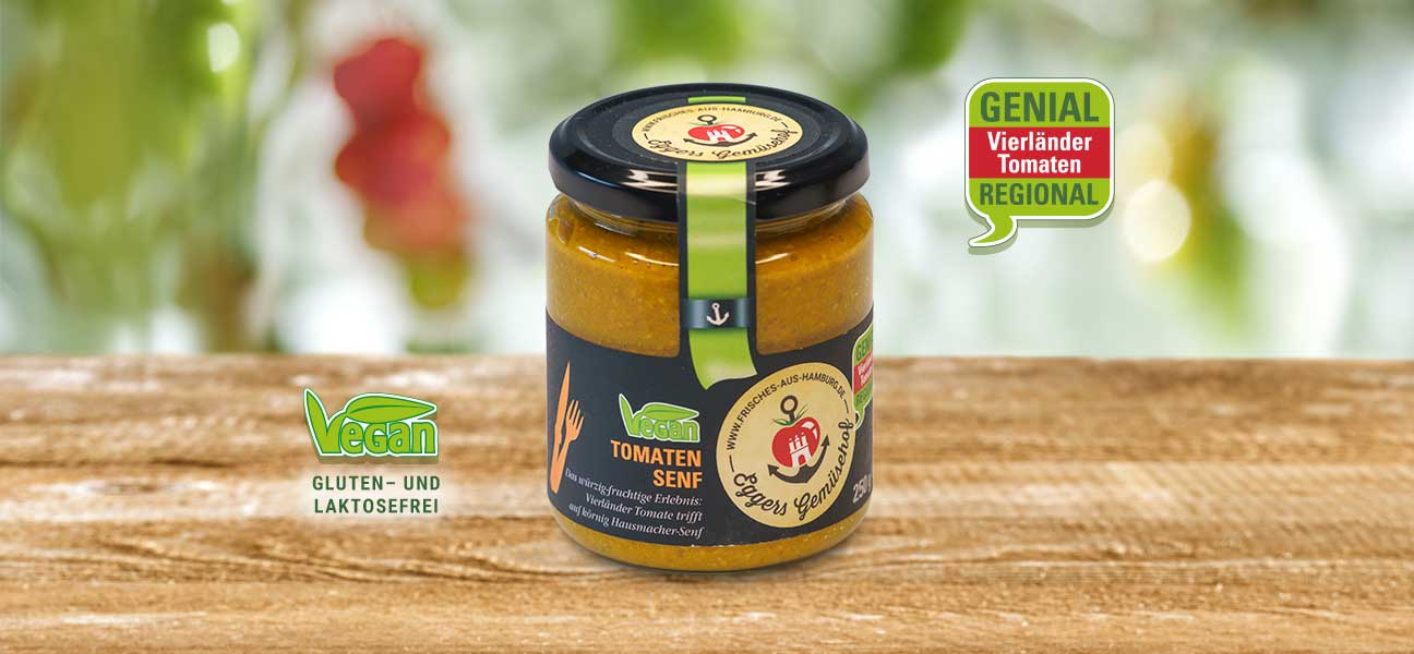 Unser Tomatensenf ist vegan, gluten- und laktosefrei.